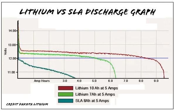 График за празнење на литиум против SLA